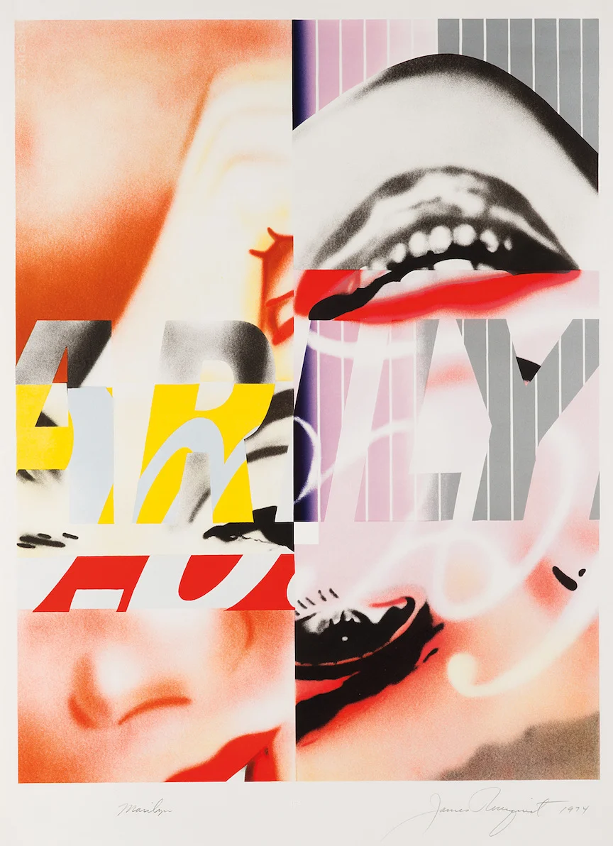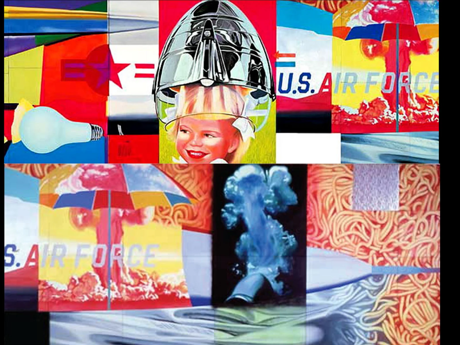 "Le collage est comme une lueur… un reflet de notre société moderne. Par exemple, mettons que vous vous promenez dans le centre de Manhattan en regardant les jambes des femmes qui marchent devant vous, vous verrez tout de même, dans votre champ de vision, le taxi qui arrive et qui risque de vous renverser. Les jambes des femmes et le taxi sont autant d’éléments que vous voyez, analysez et identifiez par fragments. Cela se passe très rapidement et simultanément." (James Rosenquist)