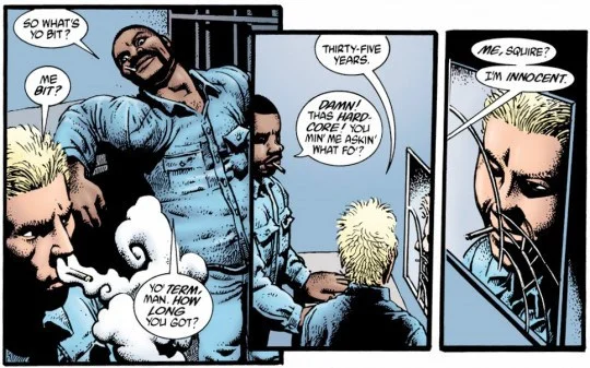 Constantine est un personnage taillé pour le papier : grande gueule et spirituel, le blond toujours engoncé dans son imper est un gars attachant, mais c’est aussi un type dur à cerner, mystérieux et loin d’être aimable. En un mot, un anti-héros dont les aventures, déclinées en de nombreuses nuances de gris très foncé tirant sur le noir, s’adressent à un public averti.