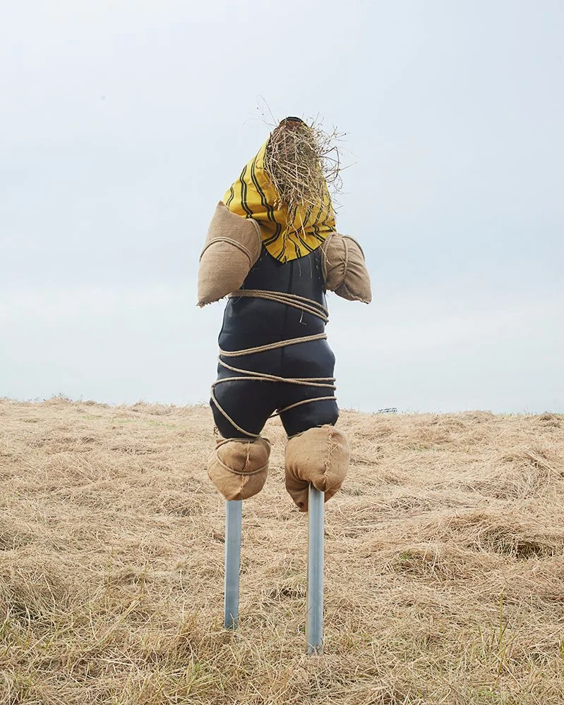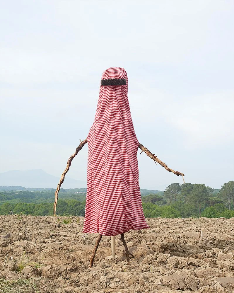 Avec l'aide de l'artiste visuel Hugo Deniau, nous avons décidé d'offrir la chance aux oiseaux de retrouver les épouvantails. Le mot en lui-même signifie "destiné à faire peur" et il est là pour coller la frousse aux animaux qui s'aventurent sur la lande pour manger les graines avant qu'elles ne deviennent des plantes germées. Et, par extension, la simulation d'une présence humaine quand il n'y a personne.