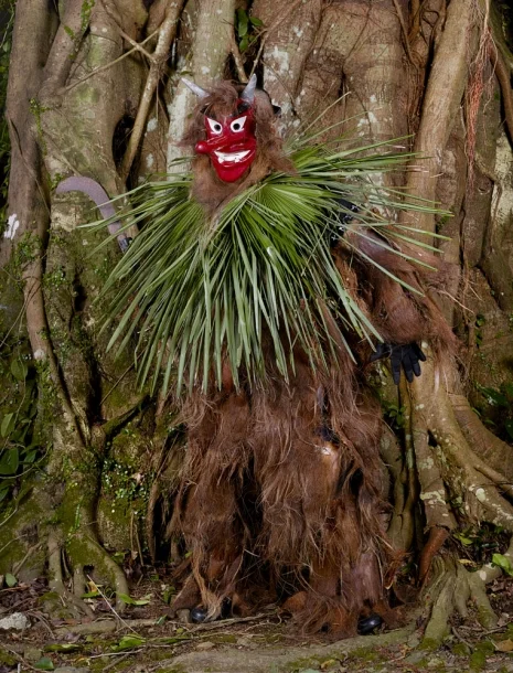 Avouant, il y a peu, que rien ne le passionnait plus que les traditions tribales (païennes) européennes, Charles Fréger est parti voir de quoi il retournait exactement. Et son voyage l'a porté au-delà de ce qu'il envisageait, puisqu'il est allé jusqu'au Japon voir comment se traduisaient par des costumes, changement de saison et pratiques rituelles.