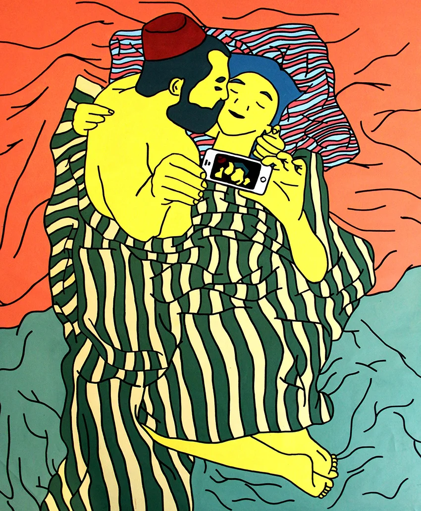 Ce qui intéresse l'artiste algérien Yasser Ameur, c’est de dévoiler la laideur intérieure dans toute sa splendeur. Ses personnages sont confortablement allongés dans la graisse, ils ont les yeux fuyants et dissimulent de leur masse un pactole de pétrole et d’hypocrisie.