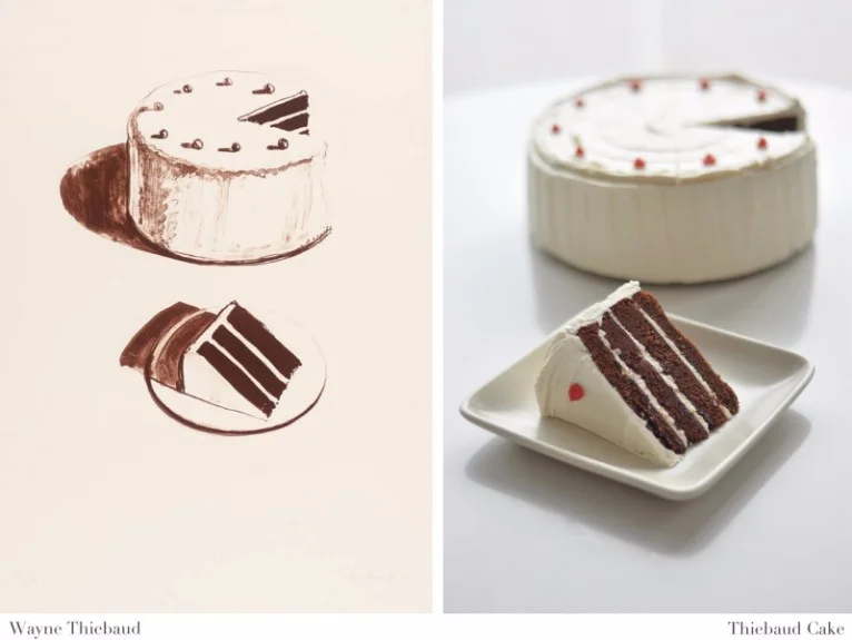 Avant de devenir photographe d'art, Caitlin Freeman était obsédée par les gâteaux. Et un jour, elle est tombée en arrêt au MOMA de San Francisco devant une huile de Wayne Thiebaud de 1963, intitulée Présentation de gâteaux, représentant trois d'entre eux, et n'attendant que la cuillère pour être dévorés. Aussitôt, l'idée lui vient d'en réaliser à son tour, mais sous la forme d'un gâteau à croquer avec son café. Et évidemment, le premier qu'elle réalisa fut en hommage à Thiebaud.