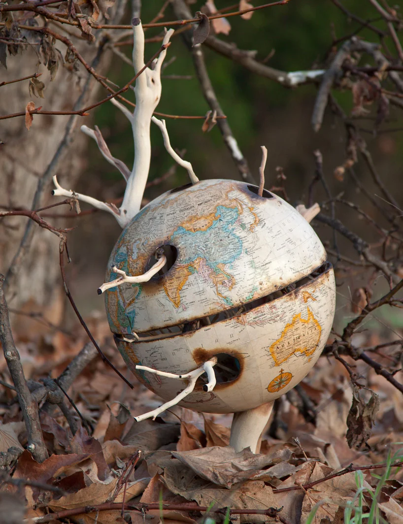 Ron Miniello croit en la géographie sentimentale. À quoi ressemble le globe? Comment se la figurer, la planète bleue? La planète grise? La planète injuste? La planète à mémoire? La planète qui écrit patiemment la carte du ciel infini, avec Hubble, ses observatoires, ses astronomes? Cela lui a donné l'idée de créer 50 représentations spatiales de la terre. Chacune a été ensuite confiée une semaine à un photographe, qui l'a intégrée, à son tour, à son monde, pour la représenter à nouveau.
