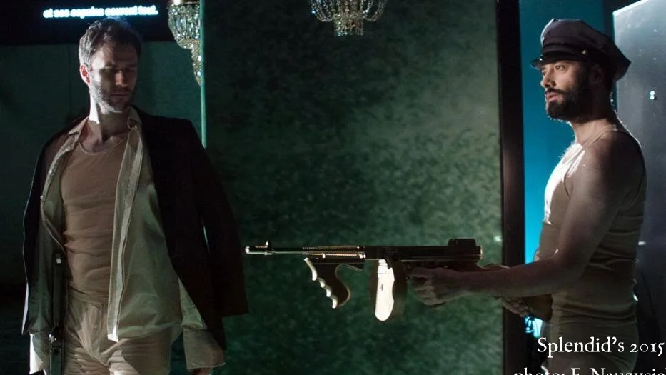 Cette fois, avec la mise en scène d’Arthur Nauzyciel, Splendid’s offre un jeu de double-miroir, démarrant par une projection du court-métrage de Genêt en 1950, Un Chant d’amour où le désir et la solitude de la prison sont mis en scène sans mots, mais avec une charge érotique à haute densité où le désir se joue, se perd et se voit stigmatisé par le personnage du maton omniscient. Ce, juste avant d’ouvrir sur Splendid’s, le rideau relevé. Nous faisant pénétrer de plain-pied dans l’histoire où, des gangsters, grimés Hollywood, se sont retranchés, après avoir assassiné la fille d’un millionnaire, et attendent l’assaut fatal, un flic au milieu d'eux.