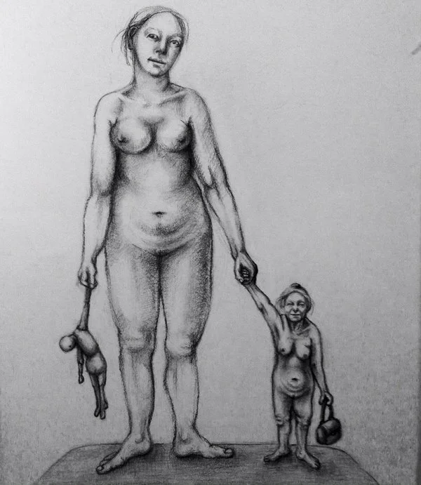 Et cette autre citation, cette fois de Frédéric Pajak : "Medi, quant à elle, est sans doute une , d'un paganisme peuplé de fées et de lutins, de sorciers et de spectres. Son imaginaire n'a rien de protestant. Elle poursuit une voie radicalement opposée. Elle n'a que faire de la vie publique, des événements politiques. Elle ne se préoccupe pas du monde, car le monde c'est elle-même. L'autoportrait est son seul sujet. Elle peut ainsi se dédoubler, se multiplier, devenir femme, enfant, vieillarde, à la fois mère et fille. La relation mère-fille, elle en connaît la fusion, elle en délivre le tabou, à la manière d'une psychanalyste, sauf que sa psychanalyse à elle est frontale. Elle en exprime le nœud, si souvent occulté, ce cordon ombilical, cette corde de pendue. Elle écrit, par exemple : « Nous sommes rattachés à la mère qui nous dirige et nous contrôle."