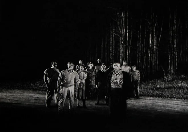 Mathieu Dufois, L’éclipse 06, 2014 Dessin à la pierre noire — 75 × 106 cm Courtesy of the artist & La Galerie Particulière, Paris