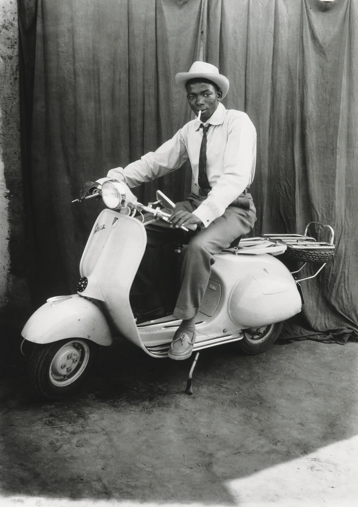 Autodidacte et précurseur des portraitistes africains, Seydou Keïta à photographié le tout Bamako dans le studio qu’il a ouvert en 1948. Le habitants de la capitale s’y sont rué pour se faire tirer le portrait, seul, en famille, toujours endimanchés, parfois même en motocyclette ; chacun prêt poser devant des fonds à motifs installés par l’artiste. Ces portraits sont autant de témoignages de la société malienne de 1948 à 1977, avec leur élégance maîtrisée qui se dégage des poses gracieuses, ces regards capturés qui transmettent des récits de vie tout en retenue. L’art de Seydou Keïta , superbe de simplicité, immortalise des destins colorés ne noir et blanc, piège un présent à jamais cadré, en offrant à ses modèles une éternité de papier glacé et une profondeur à exposer. Le parcours de l’exposition est chronologique. Il se divise en plusieurs sections qui se réfèrent aux fonds à motif décoratif ou simples rideaux utilisés par Seydou Keïta lorsqu’il réalisait des portraits.