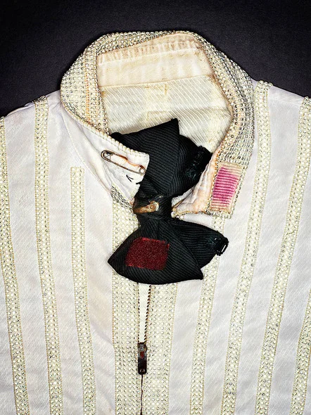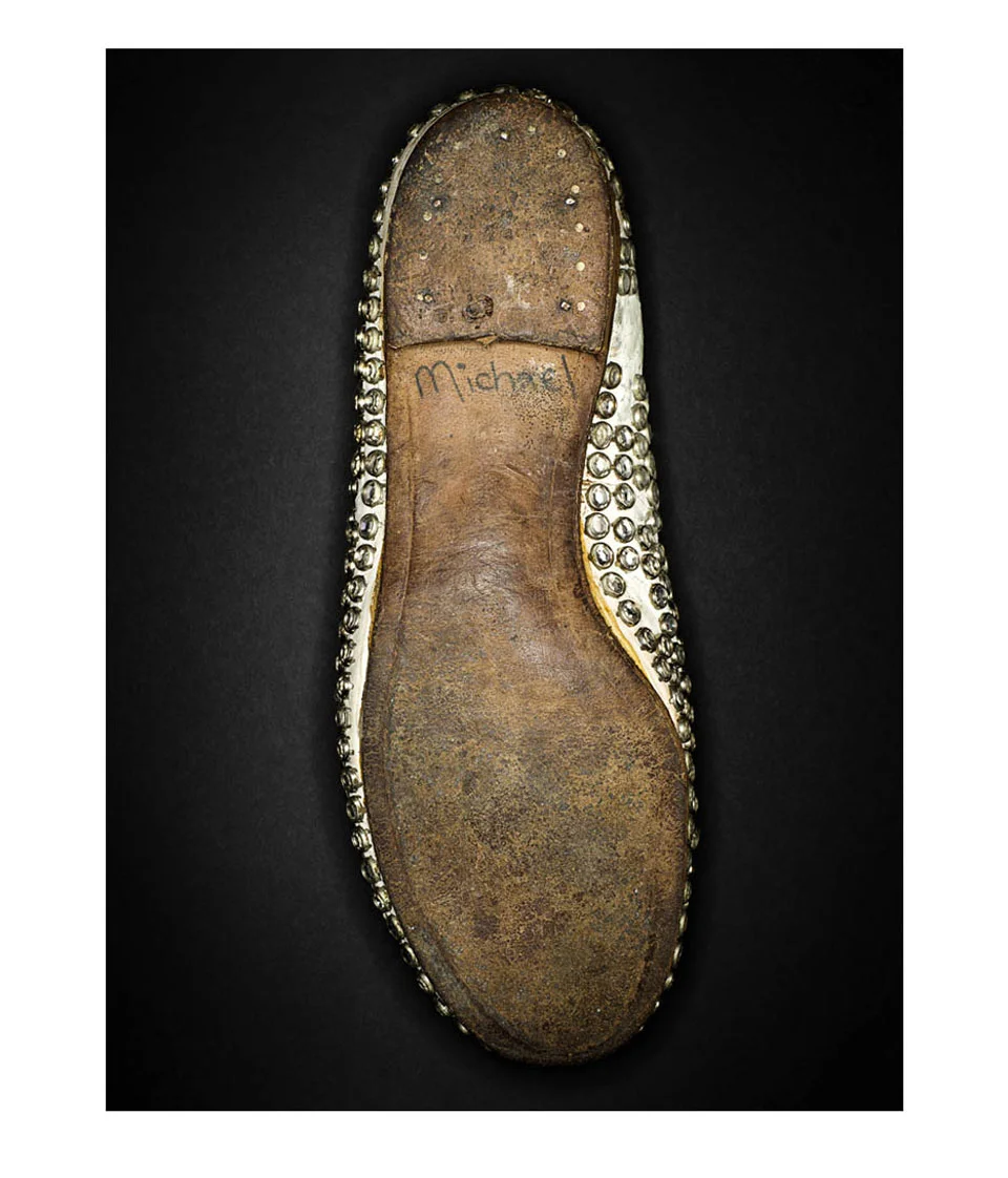 Neverland/Never Land/N'atterrissez jamais! Le vestiaire de M.J. a naturellement été vendu aux enchères. Inutile d'en dire long sur une histoire de faillite que tous connaissent déjà. Nous restent les photos prises à Neverland par Henry Leutwyler. Comme nous avons tous, les uns et les autres, des désirs d'objets, et, pour certains, des fétiches d'objets, qui se confondront pour toujours avec nous dans les mémoires, jusqu'à nous évoquer pour ceux qui nous aimaient, ces images de chaussures Capezio et de gants Swarovski qui ne danseront plus le "moonwalk" et ne désigneront plus le ciel peuvent nous toucher. Le surmoi est souvent d'abord un sur-vêtement, et c'est vrai même des plus anarchistes, ou des plus rebelles à la consommation, ou des plus frugaux. Pourquoi désirons-nous des choses? Que leur transmettons-nous de notre être? Par quelle opération une magie s'opère, qui fait d'une écharpe un objet qui nous résume? Nous n'avons aucune réponse à cette question - enfin, aucune qui soit bien originale. Ces chaussettes sont si humbles qu'elles deviennent un cri perçant : regardez-nous être plus que ce que nous avons l'air d'être! J'aime beaucoup ces chaussettes de M.J., plus encore que ses gants en trois couleurs.