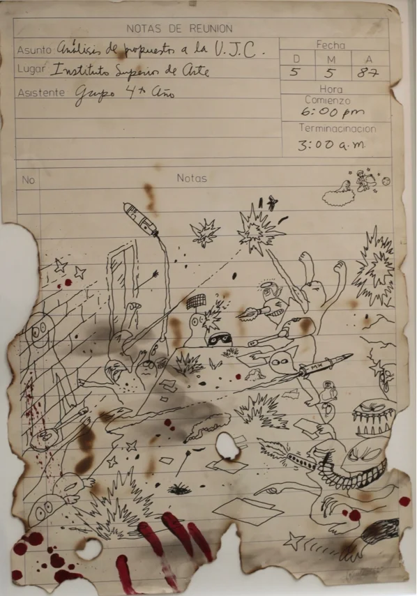 « A l'époque, nous pensions qu'il s'agissait d'espaces philanthropiques dans lesquels un artiste communiquait avec le public. On s'est aperçu bien plus tard qu'il s'agissait en fait d'espaces commerciaux. À l'époque il ne semblait pas important de créer un certain type de travail pour le vendre. Les gens avaient un contrat avec le Fonds Cubain pour le Patrimoine Culturel d'un côté, et de l'autre ils faisaient de l'art, de l'art qui n'était pas destiné à la vente, même si, plus ou moins par chance, il se vendait quand même. Personnellement, je n'ai pas développé de talent à créer des objets qui termineraient accrochés à un mur en décoration. Néanmoins, je n'ai aucun problème avec le fait qu'un artiste doive gagner sa vie avec l'art qu'il produit, et ce travail artistique a un double sens. Il a un sens esthétique et un sens économique, qui la plupart du temps est latent et dans certains cas peut se disperser, mais les deux sont inhérents à toute uvre artistique ».