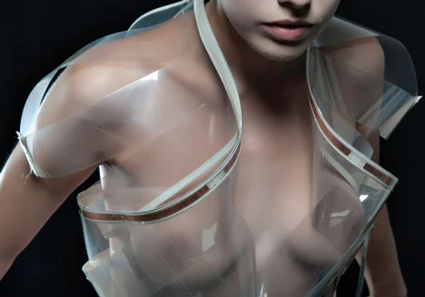 Il est possible que l'on rie d'abord du concept d'Intimacy, les robes conçues par le studio de design hollandais Roosegaarde pour gagner en transparence à mesure qu'un interlocuteur se rapproche de celle qui la porte (consensuellement, en principe - c'est évidemment un écueil dans "la vie réelle"), ou qu'augmente la vitesse de ses battements de coeur (bip bip means I love you). Ceux qui veulent travailler avec les tissus interactifs (ou smart textiles) sont encore un peu trop obsédés par la nécessité de démontrer leurs possibilités, c'est vrai, et la démarche tourne un peu en rond, et trop uniquement autour des senseurs qui captent et trahissent nos émotions. Mais ce serait à tort qu'on négligerait le côté visionnaire de cette recherche de nouveaux textiles qui changeraient moins notre manière de nous habiller que notre rapport avec nos habits: ce que nous attendons d'eux, et l'expérience que les porter nous fait vivre. Roosegaarde n'a pas inventé le décolleté, ni le déshabillé ou le jeu des transparences; mais Intimacy renouvelle l'érotisme du vêtement (ou du dé-vêtement) en y introduisant l'idée fascinante qu'il puisse être presque involontaire, comme le rougissement, la gorge soudain sèche, les gestes maladroits, qui trahissent une émotion. Jusqu'où cela peut-il aller ici? Peut-on s'offrir au regard plus qu'on ne le voudrait?