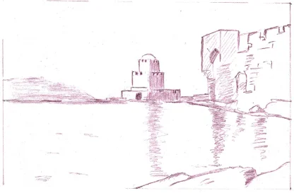 Vue de l’Amirauté (d’après un croquis du XIXe siècle) – Dessin de Philippe Arnaud.