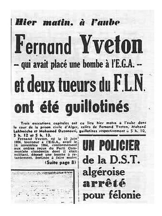 Le 11 février 1957 à la prison de Barberousse à Alger, Fernand Iveton militant du Parti communiste Algérien marche courageusement au supplice. La légende photo est d'Alger Républicain.