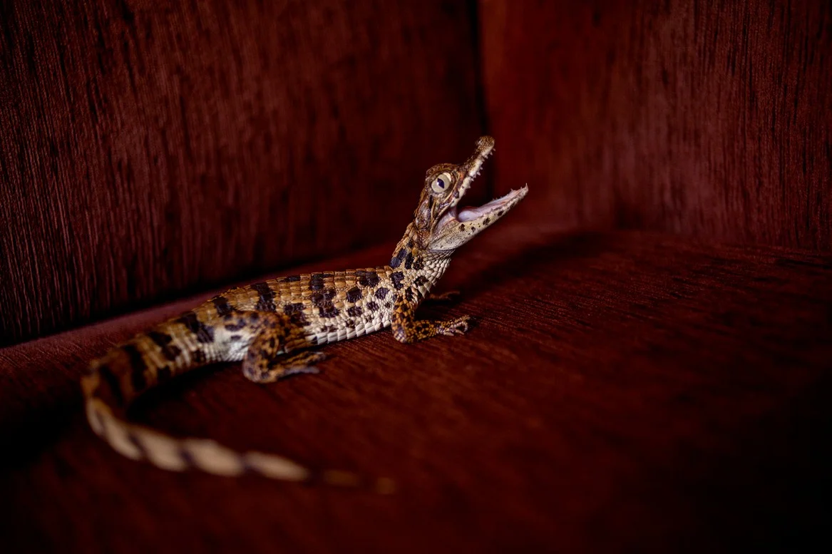 Être face à face avec un animal nous fait retourner à quelque chose de primitif, ancestral, et peut-être, qui sait, à ce moment-là, nous nous transformons en un guépard, un tatou, un aigle. Pour comprendre l’ambiance de ces photos, il faut garder en tête que même si ces animaux étaient apprivoisés, connaissaient le contact des hommes, ils n’avaient jamais pénétré dans une maison, se retrouvaient dans un environnement totalement étranger pour eux. Et tout était imprévisible, autant pour moi que pour eux.»