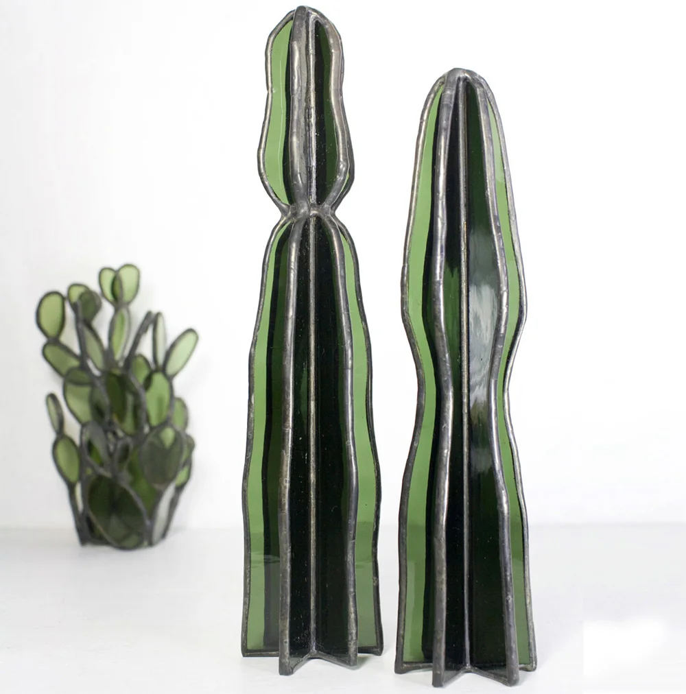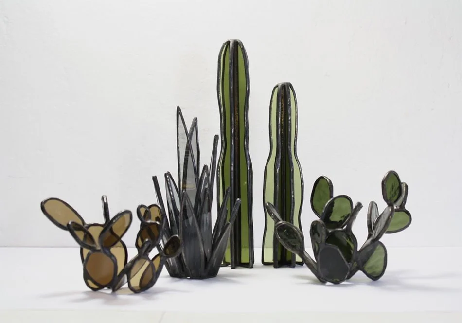 Autant influencée par les techniques de l'architecture que celles de l'illustration, Lesley Green fondatrice de Bespoke Glass introduit les nouvelles pratiques du design dans l'art des vitraux et de la verrerie. Jusqu'à présent occupée à travailler les formes géométriques, elle se dirige maintenant vers d'autres plus organiques, comme avec ses dernières séries de sculptures où les vitraux empruntent aux agaves et autres cactées leur formes, leurs reflets et les transparences vertes pour renvoyer la lumière de nouvelle manière.