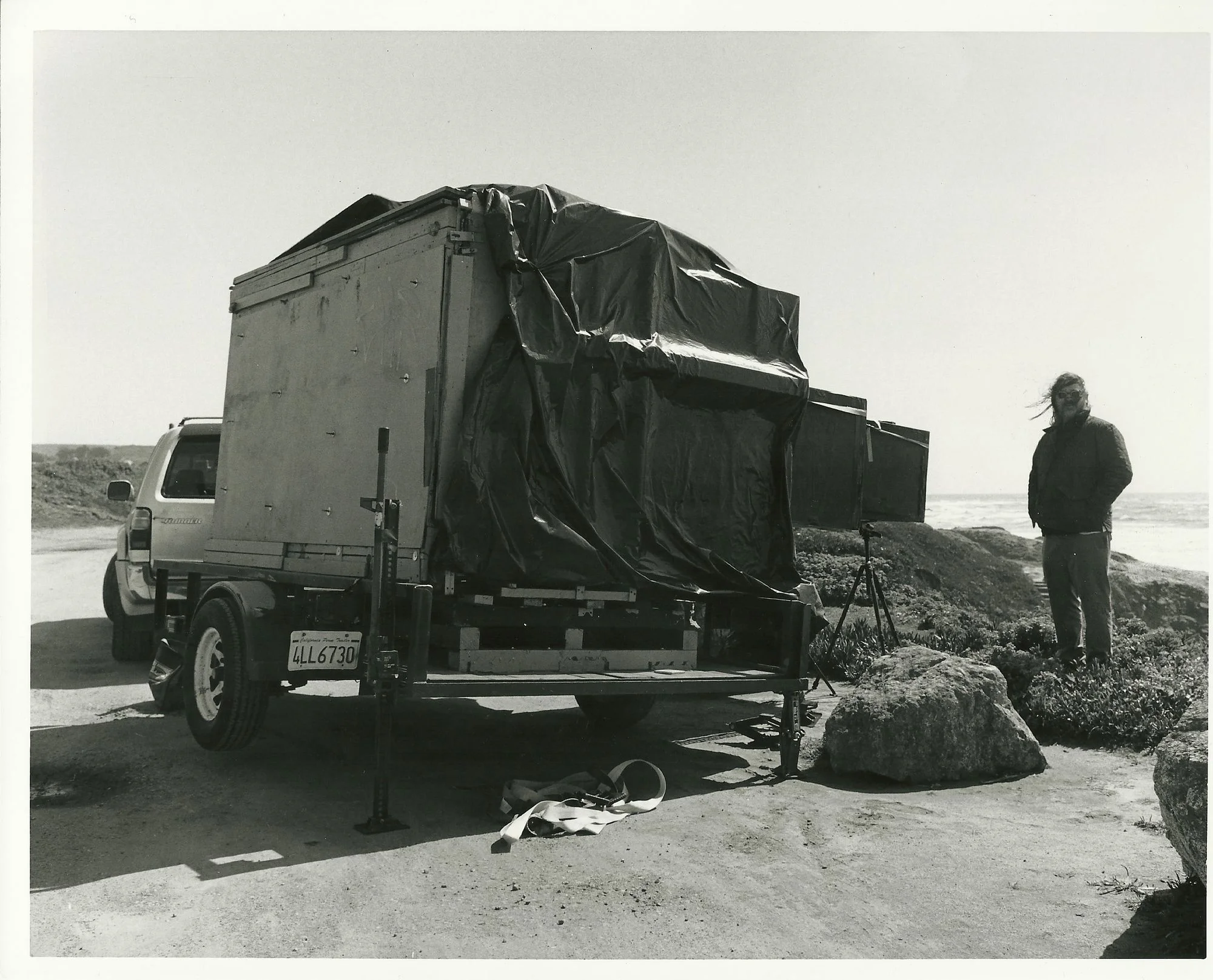 Chiara a mis au point un procédé qui tient de la photographie, de la sculpture, comme de l'accident. Son invention nécessite une attention particulière, autant pour la pratique des outils que la patience à développer pour simplement s'en servir. Il a construit seul ses appareil, dont le plus grand (voir plus haut) est un studio de poche de 50" x 80" qu'il remorque derrière son véhicule. Une fois le lieu de la photo décidé, il positionne son matériel, entre littéralement dans l'appareil et effectue ses réglages à la main, en distribuant la quantité de lumière nécessaire à l'insolation de son papier-photo couleur. Et il travaille à l'instinct pour ce qui est de l'ouverture de la lentille. Ensuite, il se sert de ses mains pour introduire son rouleau de papier sensible dans un tambour vertical, dans lequel il balance ensuite son révélateur. Le format du papier étant, cela laisse souvent des traces au tirage qui imprégnent le cliché final.