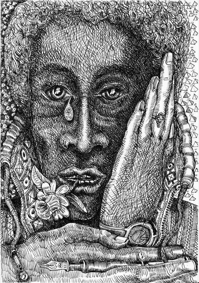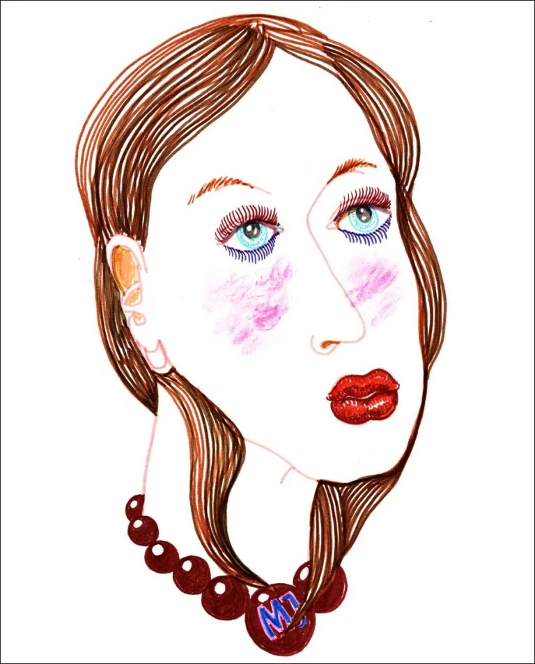 Dans la série Woman in 68 colors se succèdent des visages féminins dessinés à la pointe feutre Stabilo sur papier. Ces dessins au style naïf, presque enfantin, témoignent d’une volonté de réenchanter le monde. Les traits tout en courbes multiplient les couleurs, sans souci de réalisme. Les cils et cheveux sont représentés par une superposition de traits dont le foisonnement forme un écrin de douceur. Les attributs féminins (lèvres pulpeuses, maquillage, cheveux longs et bijoux) sont exacerbés.