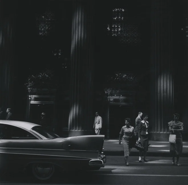 Né en 1931 dans le Wisconsin, Ray K. Metzker s'intéresse à la prise de vue à l'occasion de son passage à l'Institute of Design de Chicago, dans les années 1950. Parcourant les rues, il capte les passants pressés, les subtils jeux d'ombres qu'offre la ville, toujours en noir et blanc et en argentique. Metzker commence alors à passer plus de temps dans sa chambre noire, testant divers procédés artistiques : composition, photomontage, négatifs superposés ou multipliés, voire solarisation. Méconnu en Europe, il constitue une référence photographique outre-atlantique, sa première rétrospective datant de 1967, au MOMA. Cet américain déploie ainsi ses expérimentations, plus technicien que plasticien, tout en gardanten tête qu'un tirage est fait pour être vu, exposé enfin. Sa conception, rare pour l'époque, va à l'encontre du photoreportage et de l'utilisation de la couleur qui commence à se démocratiser. Solitaire et perfectionniste, il laisse la possibilité au réel d'interagir avec l'image qu'il possède cependant déjà à l'esprit.
