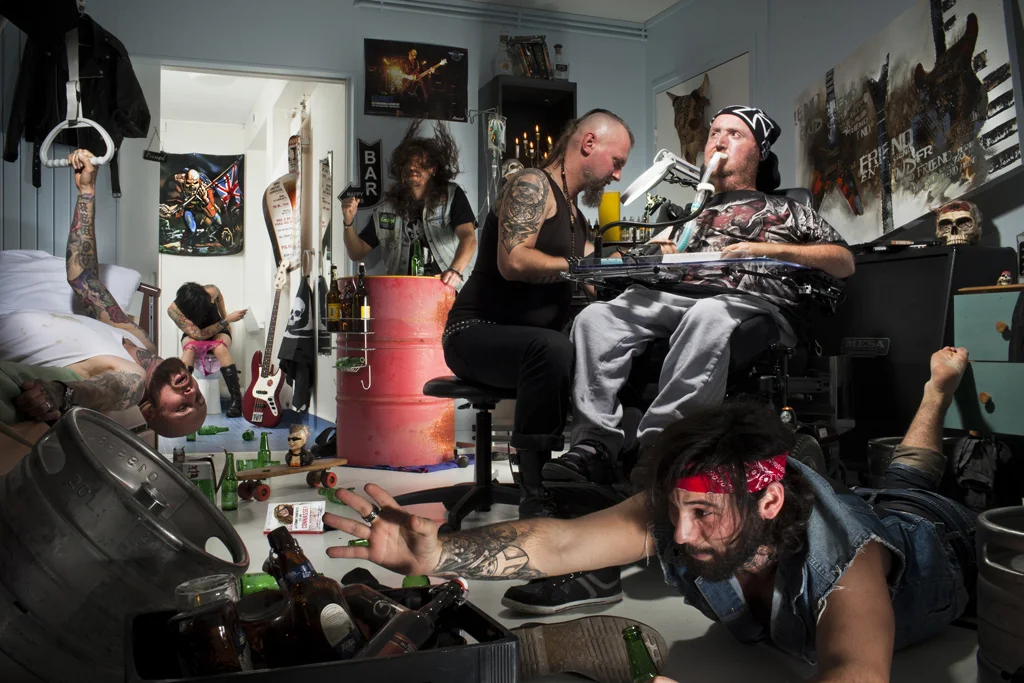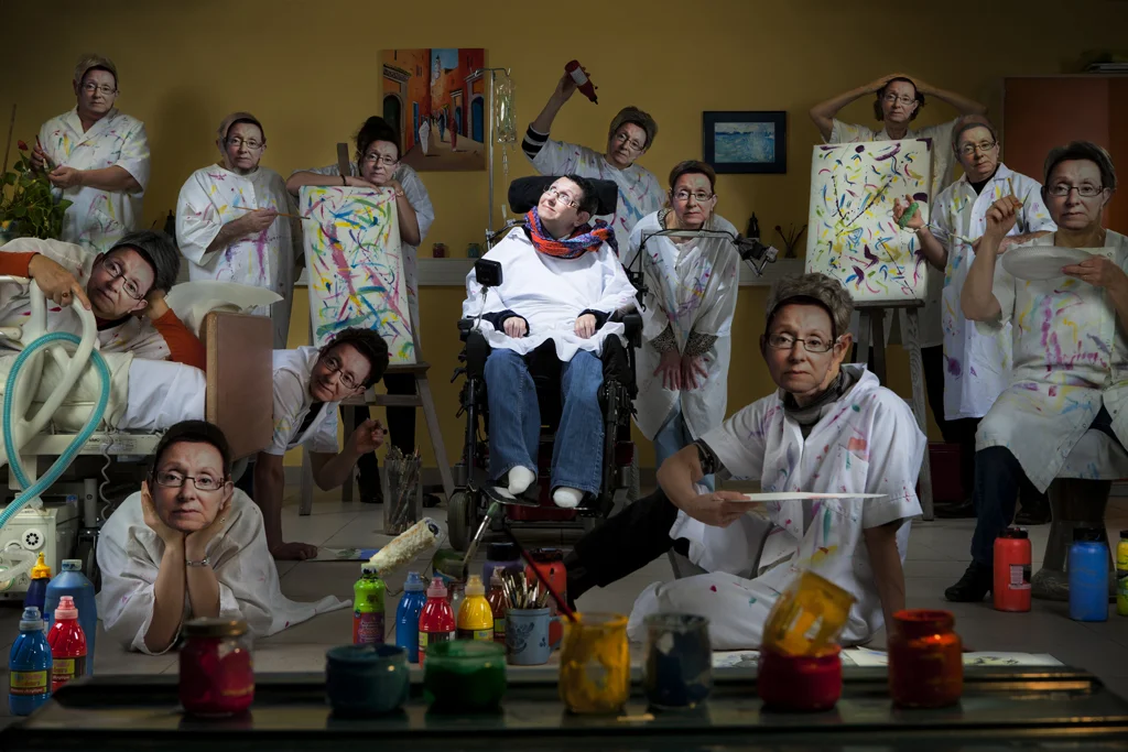 Extra/Ordinaire de Christophe Hargoues met en scène l’univers mental et fantasmatique de personnes atteintes de graves maladies dégénératives dont trois sont décédées depuis. Tout homme a droit à son imaginaire. C’est à travers cette assertion que Christophe Hargoues travaille à une réhabilitation de la persona de ses protégés. Ces « malades » interprètent leur propre personnage, projeté et interprété par le photographe,(on pense à Kubrick) en pleine fantasmatique, acteurs et sujets de ces scènes, dans une référence au cinéma . Chaque composition a pris des mois à se « monter », comme un événement dans le cadre de l’institution.Tout est juste, sans ostentation, une forme de performance se lit entre les lignes. Christophe Hargoues contribue à une thérapeutique par l’image en libérant l’imaginaire, à travers la scène fantasmatique, devenue réelle le temps de la prise de vues….On imagine la jouissance de ce « fuck off » prononcé à la maladie et le regain de vie inscrit dans le projet. Football américain, hard rock, armée, sexes, sont réintroduits dans l’ univers médical aseptisé…où le silence règne en maître... et l’on mesure la formidable énergie, la détermination de l’auteur, pour porter ce projet dans le temps. Sa photographie pourrait illustrer nombre de magazines sur la dépression; un coup de tonnerre dans un ciel bleu rappelle que notre société ne veut pas voir, ne veut pas entendre ceux qui tombent, comme au champ de le vie, dans l’oubli et le silence. Et pourtant, en dehors de tout lien familial, nous sommes ce qu’ils sont. Dans ce travail, le photographe fait preuve d’un humour et d’un amour qui touche, il coud cet imaginaire, qu’une forme de cynisme ambiant recouvre, et offre une réparation au corps social.