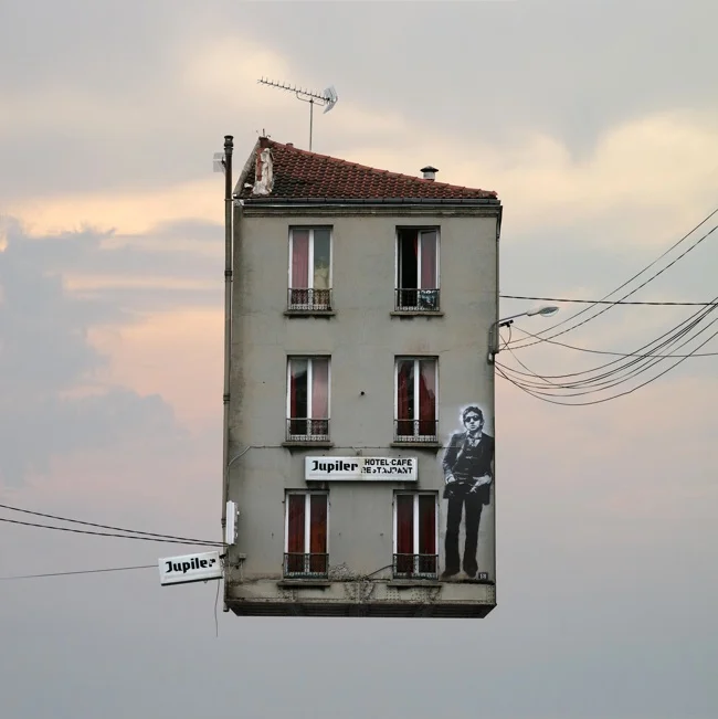 Le fait d’être né et d’habiter à Ménilmontant lui a fait côtoyer des bâtiments sans âge qui l’ont inspiré. Comme chacun de ses vieux immeubles avait une histoire à raconter, il les a sorti de leur rue triste et les a représenté flottants dans le ciel, uniquement rattaché au sol par quelques câbles. Les tableaux obtenus n'étant pas sans rappeler Le Château Ambulant d’Hayao Myazaki, une influence revendiquée.