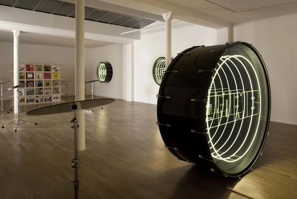 Ivan Navarro, Drums, 2009 Néon, contreplaqué, métal, miroir, électricité — 122 × 160 × 122 cm Photo © Jorge Martinez Muñoz