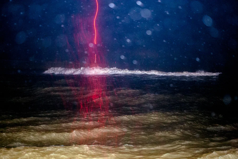 Sur cette côte, la profondeur de la nuit oblige à accommoder longuement sa vision. Une fois la mise au point faite, mes yeux découvrent de gros rochers, un phare, des arbres et, neige et mer mêlées me sautent aux yeux en brouillant ma vision. Toutes ces images qui existaient avant moi dans la nuit me sautent soudain au visage.