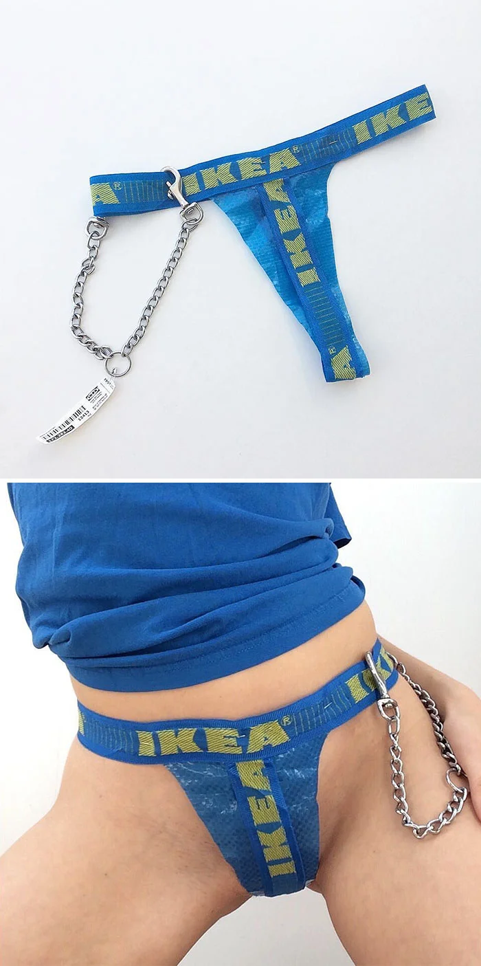Aujourd'hui, des créatifs s’ingénient à réaliser des vêtements en sacs Ikea, utilisant le fameux sac bleu en polypropylène. Un sac qui avec un peu d’imagination peut se transformer en casquette, robe ou même chaussures.