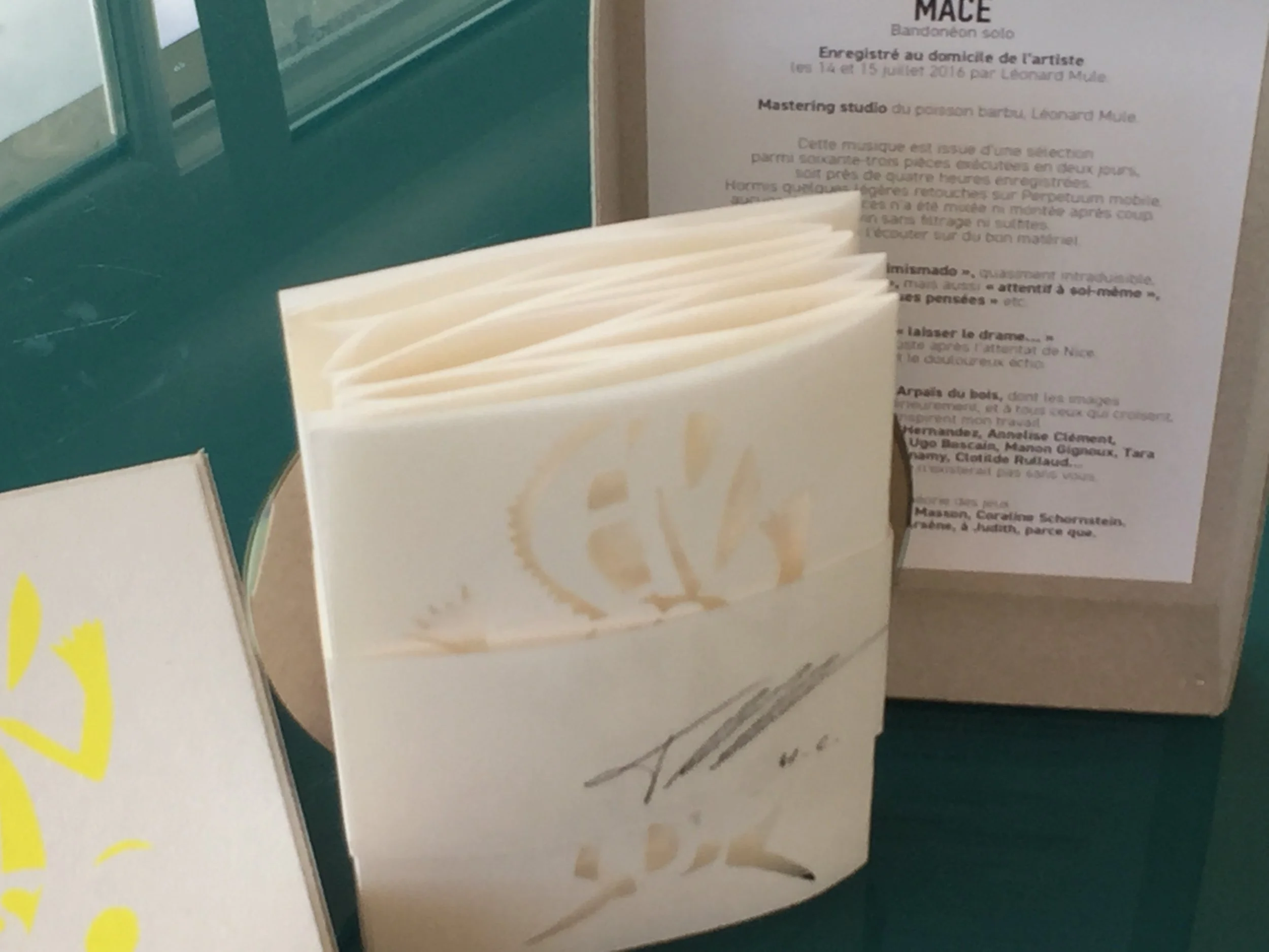 Le premier album sur la platine ou dans l'ordi, on se prend à décroiser/déplier les pages, et on arrive au cœur du projet. Le Macé est un joueur de bandonéon qui se voit, avec son petit Torn, jouer du soufflet, respirer dans les creux, musiquer tout du long…
