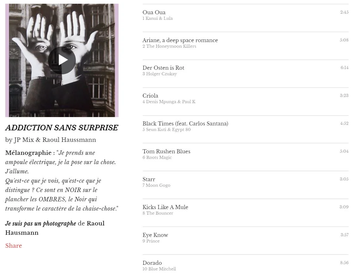Addiction sans surprise : notre playlist enregistrée boulevard Raoul Hausmann MUSIQUEL'Autre QuotidienApril 20, 2018Addiction sans surprise Facebook0 Twitter Tumblr Pinterest0 0 Likes