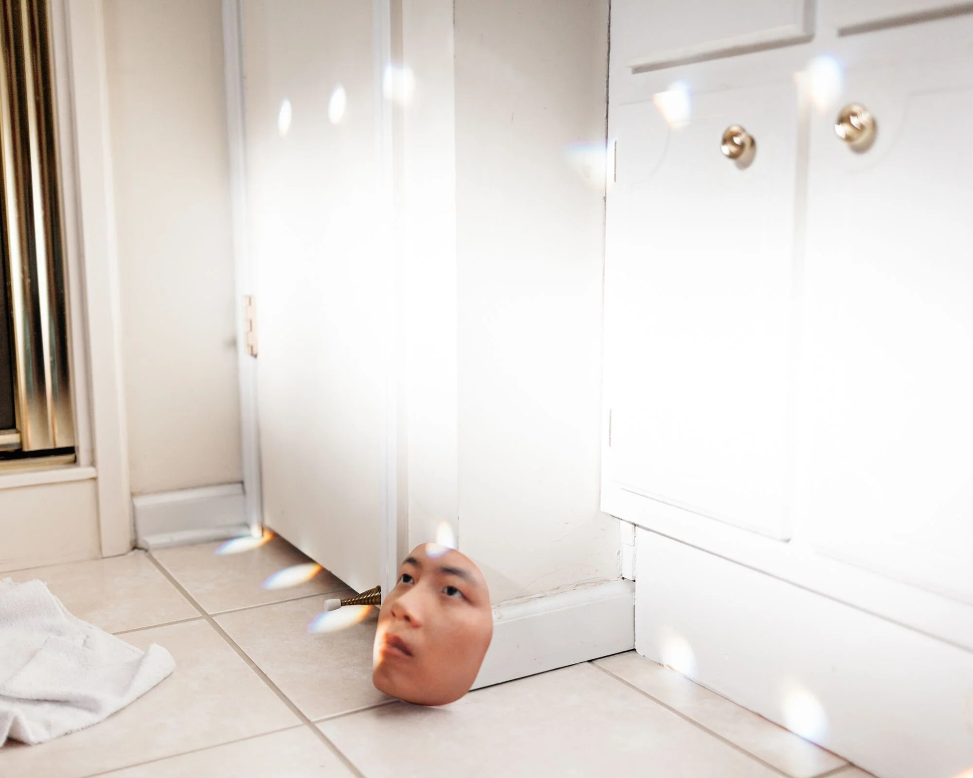 Aussi, ses auto-portraits fonctionnent à un double niveau. I'm Only Here To Leave, son projet en cours, est constitué d’images imprimées en 3D, mises en scène dans des décors réels. Le photographe originaire de Memphis, Tennessee, aujourd’hui résident de Brooklyn à New York, explique : "Je voulais trouver un moyen de me représenter sans me photographier littéralement. J'ai donc préféré faire des photographies de mon visage et de mon corps pour contrôler ma représentation". Dans ces images, l'artiste et les autres - famille, amis et étrangers - se retrouvent souvent avec des masques du visage de Kha ou avec d'autres accessoires qui brouillent les lignes entre corps et corps photographié.