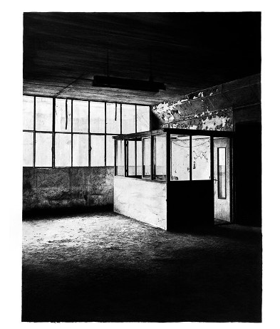 Roxane Daumas:   L’acte photographique est systématiquement ma première approche et ma première distanciation au sujet. Le cadre et l’exposition sont déjà pensés dans la perspective du dessin. Je n’ai pas d’ambition documentaire. Mes dessins ne sont que la projection de ma perception sensible du lieu. Ils sont contradiction. Très réalistes mais pourtant fantasmés, obscurs mais ils révèlent la lumière, grands à notre échelle mais très petits au regard des espaces photographiés…