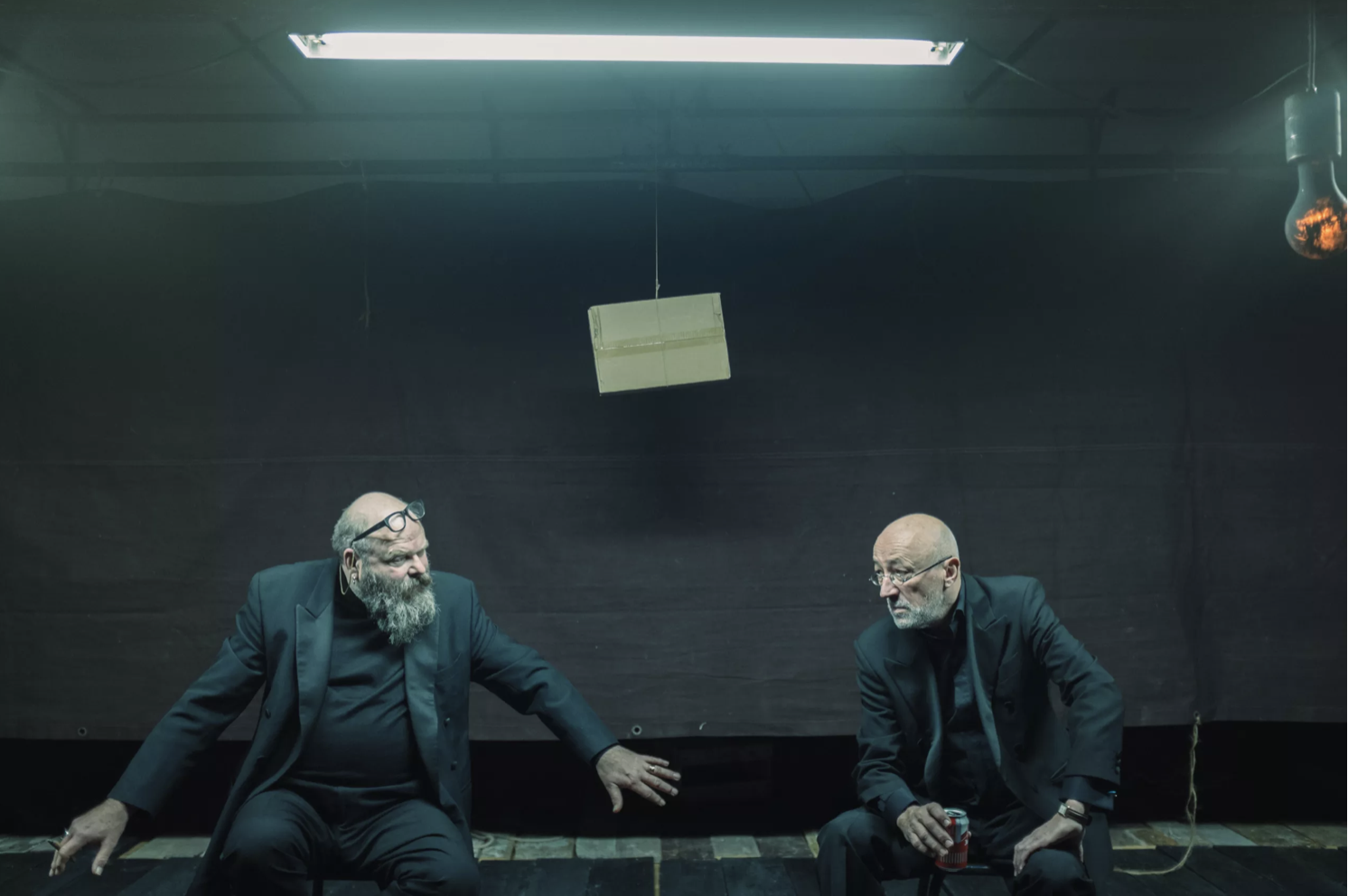 Ils sont deux sur scène, assis sur des tabourets face au public et on sent déjà qu'en additionnant leurs solitudes ils ont rejoint à la famille des disparus, déjà on devine en eux Vladimir et Estragon, Laurel et Hardy, voire Dante et Virgile réunis après une longue amnésie.