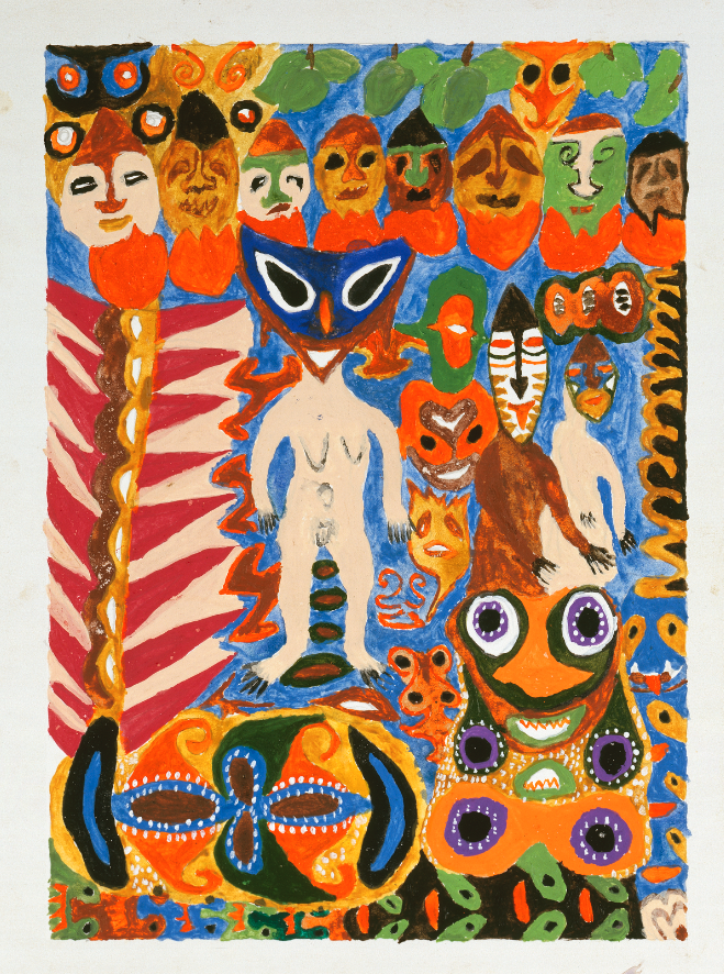Chiphowka Kowspi, apushindao (titre attribué) (Vieille dame), série Peintures kwomas Série verte, avril - juillet 2001, gouache, peinture acrylique et graphite sur papier grainé Clairefontaine, 31,8 x 23,9 cm © FRAC Picardie