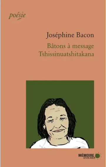 « Bâtons à message », publié en édition bilingue français-innu chez Mémoire d’Encrier en 2009, est son premier recueil de poésie. Passeuse infatigable, elle y célèbre avec une immense économie de moyens des traditions immémoriales baignées de rapport intime à la nature, des violences subies et non effacées, des espoirs ténus mais réels.