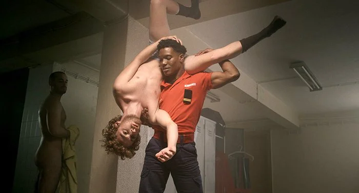 Soudainement le prince se retrouve en face des gens qui n’ont pas peur de montrer leur corps. J’ai joué avec cette idée de ces calendriers de pompiers qui sont souvent photographiés nus. Je suis allé plus loin en demandant aux comédiens de poser à la fois comme pour ces calendriers de pompiers, mais en reproduisant des postures de personnages qu’on pourrait croire issues de la peinture classique. J’aime beaucoup la peinture. Là, ce sont des peintures inventées dans l’esprit de Rubens ou de Velázquez. Je voulais que le spectateur se dise qu’il entre dans une caserne et comprenne que c’est une caserne spéciale ! Une caserne de fable ! En même temps les exercices