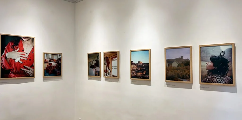 L’exposition des photographies de Thibault Lévêque et des poèmes d’Eva Bottega donne à voir et à écouter le déploiement des corps dans l’espace, la présence de flammes où poudroient ces lumières appelées mots et photos, en ces décors, lieux mobiles et immobiles, topographie du sensible par le voyage américain. Le lieu est multiple, il appartient autant au voyage intérieur qu’à la plume qui en établit les correspondances, à travers une photographie, elle aussi, nue, sans artifice, presque fraiche, bientôt brûlante.
