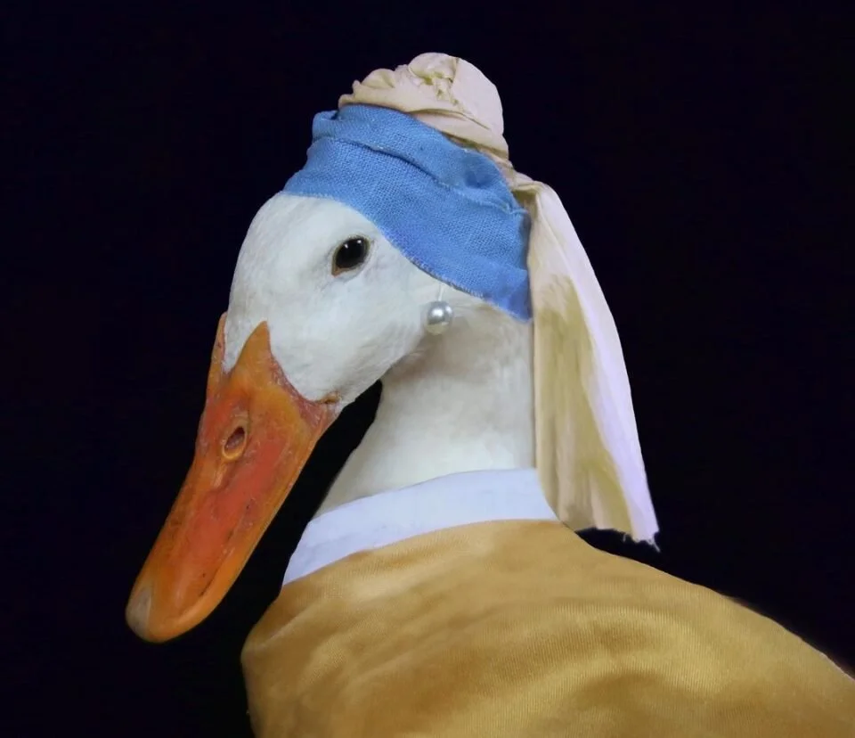 My Girl with a Pearl s’avère être une installation numérique légère et très créative, à la place du tableau emblématique. Fruit d'un appel d'offres lancé l'année dernière, qui a recueilli près de 3 500 propositions, cette œuvre temporaire présente en boucle 170 rendus du portrait de Vermeer de 1655. Les médiums et les styles varient considérablement, et l'installation présente tout, d'une itération abstraite utilisant des élastiques multicolores à un portrait élégamment photographié en passant par la figure virale de l'épi de maïs.