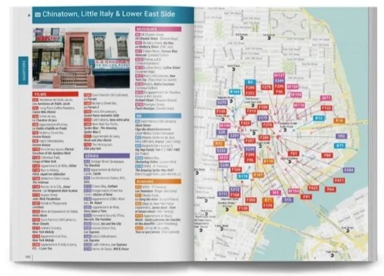 Leur nouveauté, ce sont les cartes des 100 lieux cultes, qui reprennent le concept en format plus léger (une carte qui se déplie au format 60 x 54 cm, un peu plus grand qu’un A2 et pliée 10 x 18 cm comme un livre de poche) avec une sélection plus réduite pour couvrir un temps court et voir l’essentiel. Le recto propose une carte avec les points d’intérêt regroupés par sujet et le verso, le petit texte qui les présente. Bon c’est vraiment plus court que les guides, mais le concept de la carte qui tient dans la poche pour une balade marche bien quand on a un peu moins de temps.