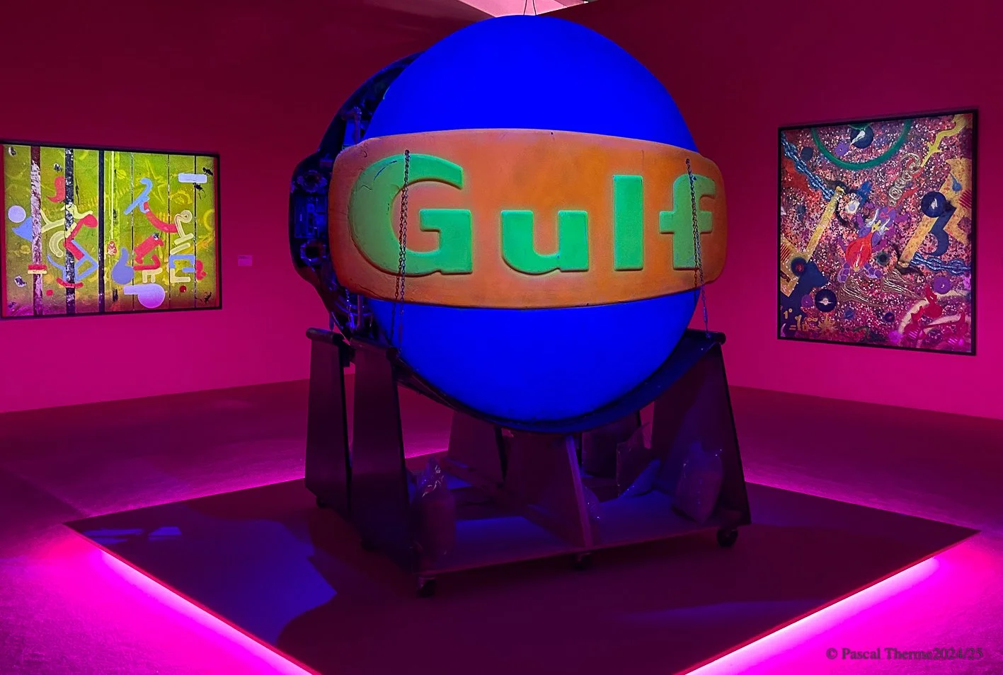 Conçue conjointement par le Palais de Tokyo et le Capc Musée d’art contemporain de Bordeaux, l’exposition « ALPHABETA SIGMA », pensée en deux mouvements, regarde le travail de l’artiste américain RAMMELLZEE (1960-2010) par les substances qui le composent. Sans vouloir prendre la forme de la rétrospective ou prétendre à l’exhaustivité, elle s’engouffre dans les méandres d’une pratique tentaculaire qui se manifeste aussi bien par l’écriture théorique et poétique, la peinture, la sculpture, la musique, la performance, le cinéma, les costumes et les bijoux… Autant d’éléments fluorescents dans la lumière noire, qui participaient à l’entreprise de guerre menée par RAMMZELLZEE contre le langage et sa violence. Une guerre qui se jouait aussi bien sur les murs des galeries d’art que dans l’espace, public ou cosmique.