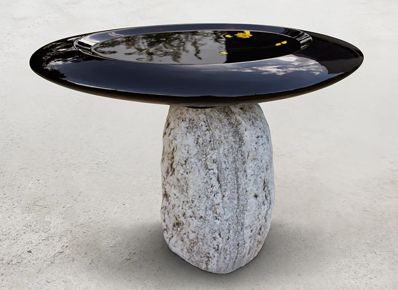 Pour sa deuxième exposition en solo à la galerie Friedman Benda, New-York, intitulée « Water Meditation », il avait choisi de présenter des oeuvres (peut-on encore parler de meubles, à ce stade ?) composées uniquement de deux mediums : le basalte indonésien et la laque traditionnelle. L'occasion pour lui de rappeler que la laque est le produit de la sève d'un arbre, parfaitement naturelle (voir illustrations plus bas). Et le résultat d'un long et patient travail de l'homme, puisque chaque pièce implique de nombreuses couches posées avec la plus grande attention, un processus qui prend de deux à trois mois en moyenne.