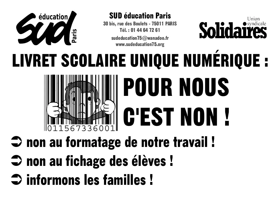 Fliqués depuis la primaire jusqu'à la mort : non au livret scolaire unique numérique !