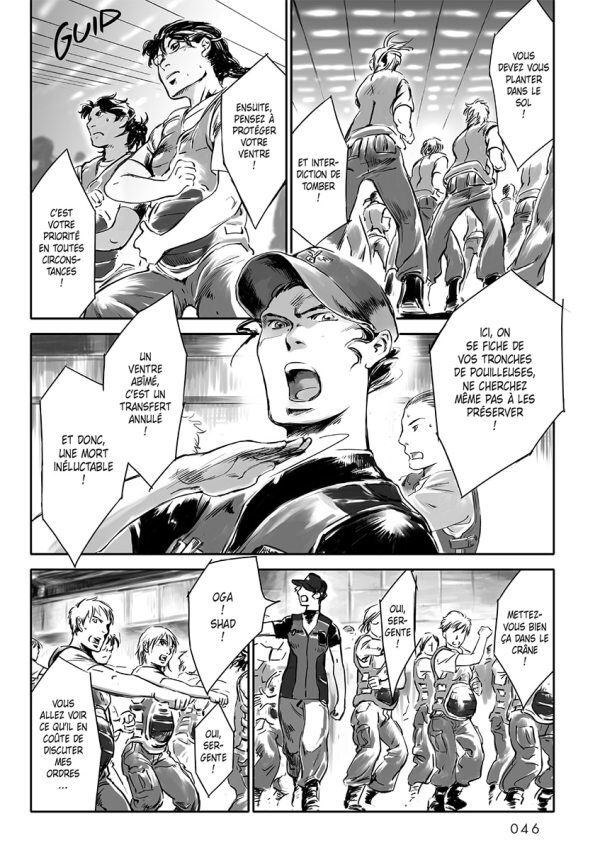 Une version d’Alien à l’envers, où l’hôte au chaud dans le ventre humain permet à ces femmes de se téléporter et surtout de téléporter troupes & matériel. Devenues « forces spéciales de transfert » ces militaires constituent une unité d’un genre nouveau. Deux héroïnes se partagent notre attention, la jeune recrue Mana Oga qui quitte sa campagne pour intégrer les forces spéciales de transfert et la vétérante Almare qui détient le record de gestation. Toutes deux entraînent leur corps à supporter une grossesse qui permettra d’agir sur le champ de bataille.